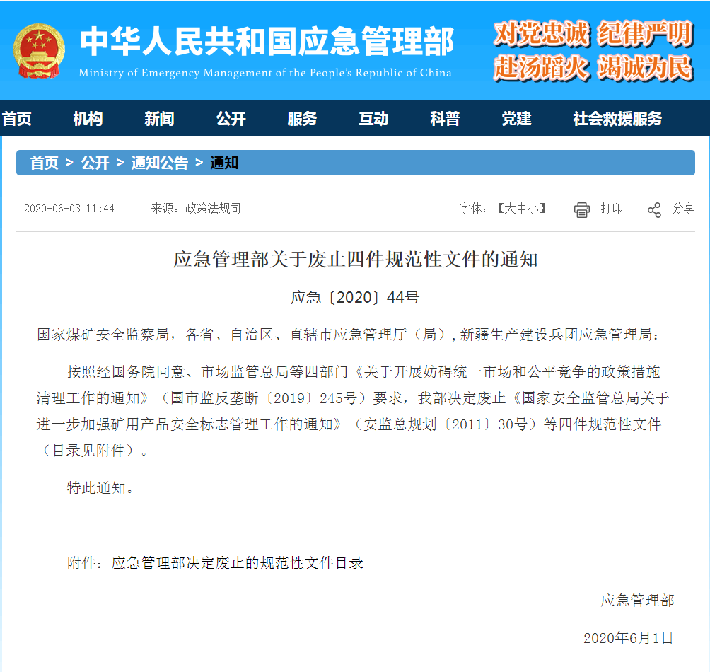 应急管理部关于废止四件规范性文件的通知
