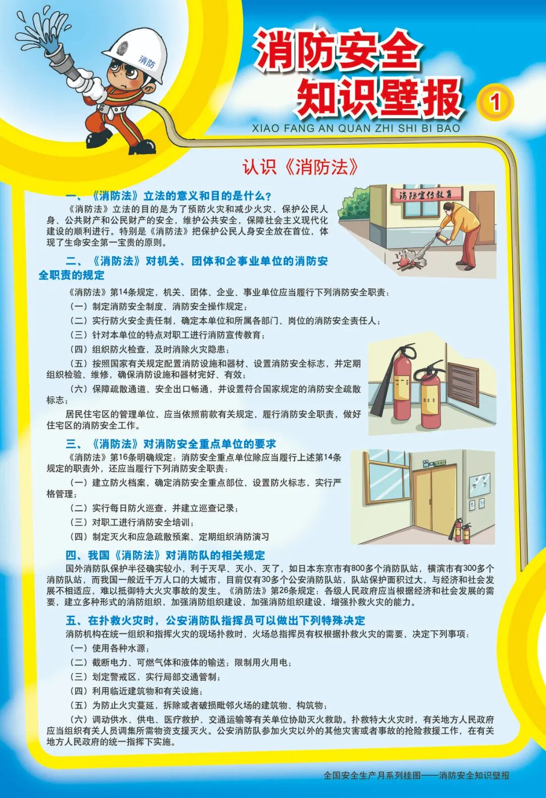 本期的安全生产月系列海报内容涵盖丰富从《消防法》的学习、