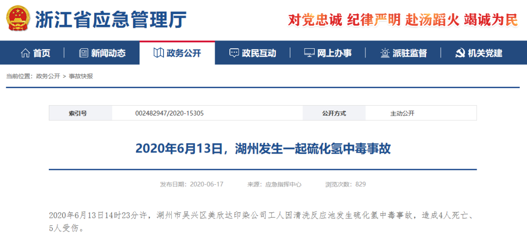 事故警示| 浙江省湖州美欣达印染公司“6·13”较大中毒事故