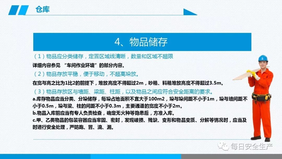 1.顶距:堆垛上部与楼板、平屋顶之间的距离不小于0.3m(人字屋架从横梁算起)。