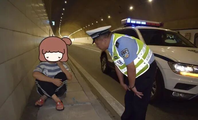女孩和家人吵架 躲进高速隧道