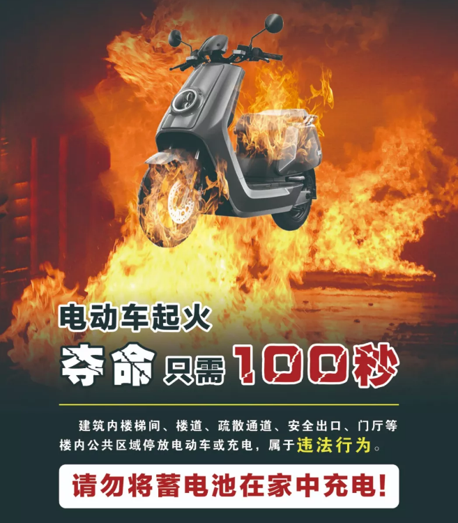 有80%的电动车火灾是在充电时发生的;电动车火灾致人员伤亡的,90%是因将其置于门厅或过道以及楼梯间等部位,人员在逃生时因吸入大量有毒烟气而导致伤亡。