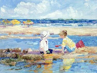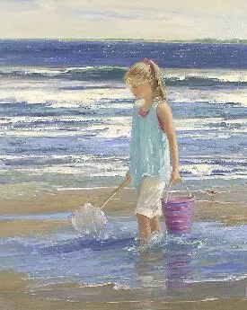 名家画廊 | 萨莉,美国画家。1946年出生于华盛顿。她最喜欢的是在沙滩上无忧无虑嬉戏的孩子,能激发她的热情和灵感,以及对儿时的追忆。