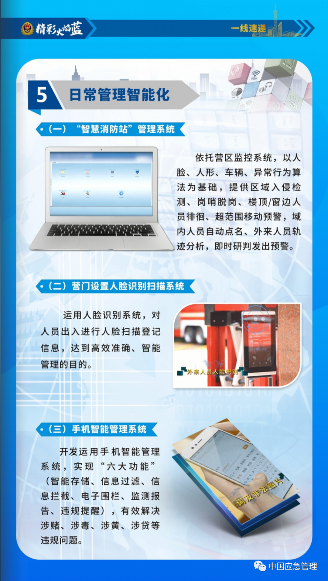 基于这一理念,广东总队积极探索消防救援营区新模式,将消防救援站打造成为外观简洁整齐、布局高效合理、执勤训练贴近实战、内务标准设置统一、日常管理智能便捷的广东特色新时期消防救援队伍“5S”标准营区。